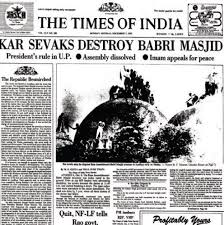 The 16th century Babri Masjid at Ayodhya was demolished by kar sevaks on December 6, 1992, an event that polarised India and led to communal riots in many parts of the country.